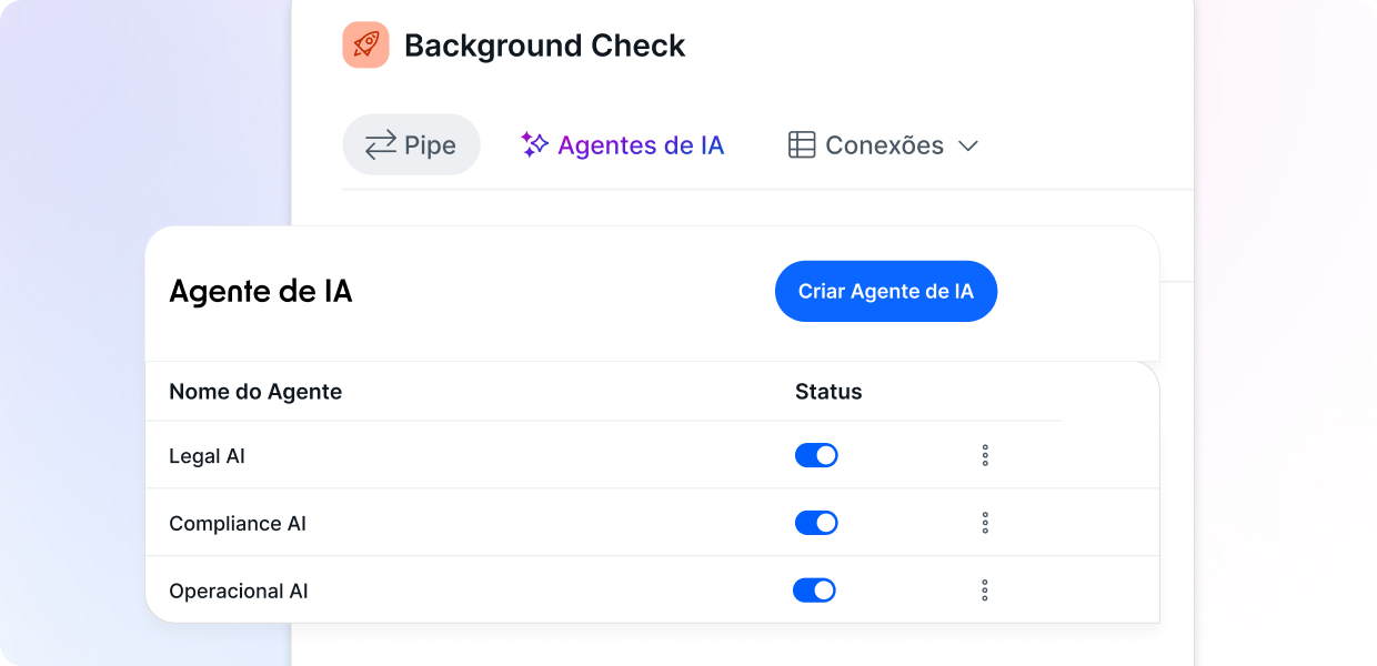 Cada AI Agent do Background Check AI Studio analisa dimensões específicas de risco, garantindo decisões confiáveis e rastreáveis.