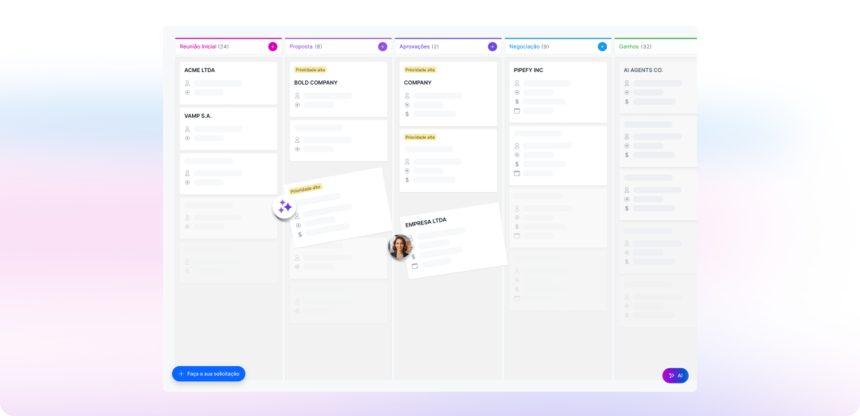 Leads chegam de múltiplos canais e planilhas sem padronização.