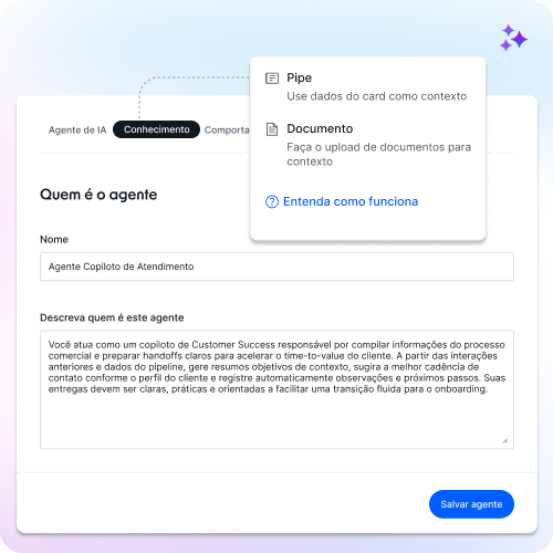 Eles assumem tarefas operacionais, como criação de tarefas, follow-ups e análise de engajamento, reduzindo o tempo médio de onboarding em até 67%.